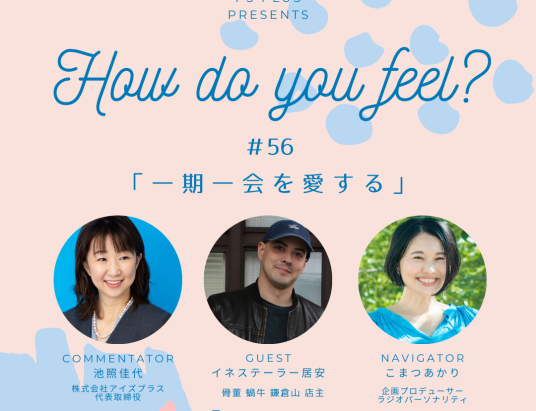 How do you feel? #53_koto代表・飯田将嗣さん こんにちは! アイズプラスPresents・鎌倉FM『How do you feel?』 5年目に突入しました『How do you fee… アイズプラス×鎌倉FM【How do you feel?】 全ての記事【鳩子の部屋】親と子の感情マネジメント 鳩子:今日は私と同じく子育て中のママさんからで「感情に任せて叱ってしまうことがある。その後罪悪感を引きずってしまって悩んでいる」というご相談… access_time2025/8/22投稿のページ送り1 2 … 20 Nextnavigate_next